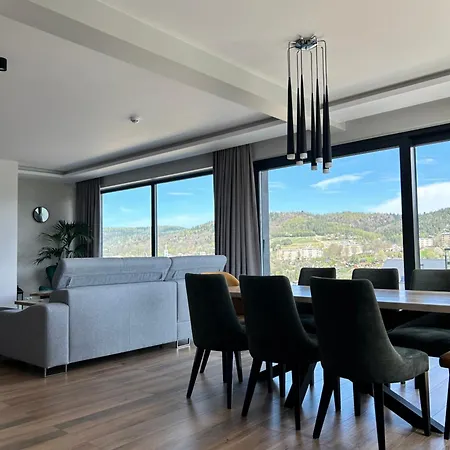 Situated 2.9 km from Slotwiny Ski Lift, the 4-bedroom Gory Swiatel Villa Krynica Zdroj features a terrace with views of the mountain.